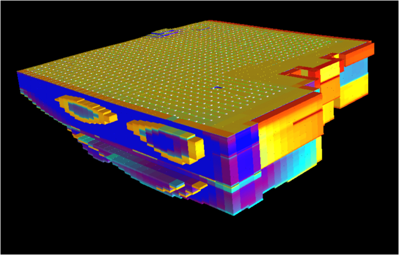 - Each cell's gravity contribution is computed by accurately integrating over the volume grid cell(topped by the 3D surface)